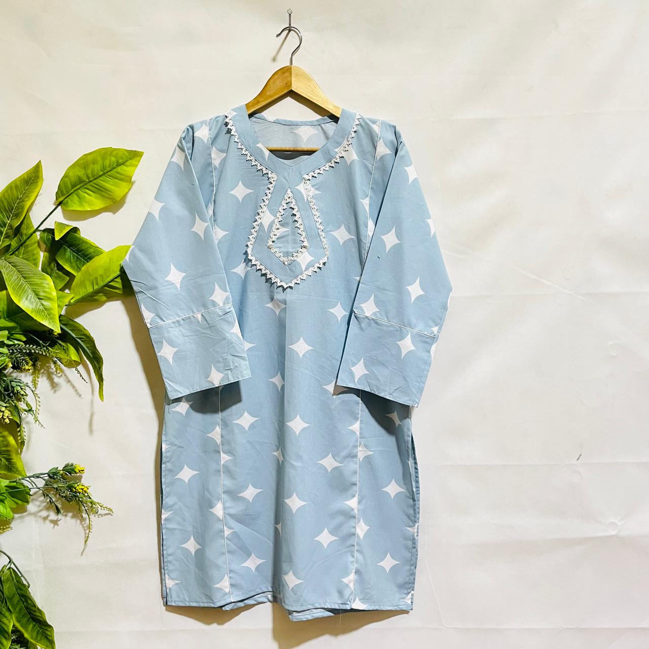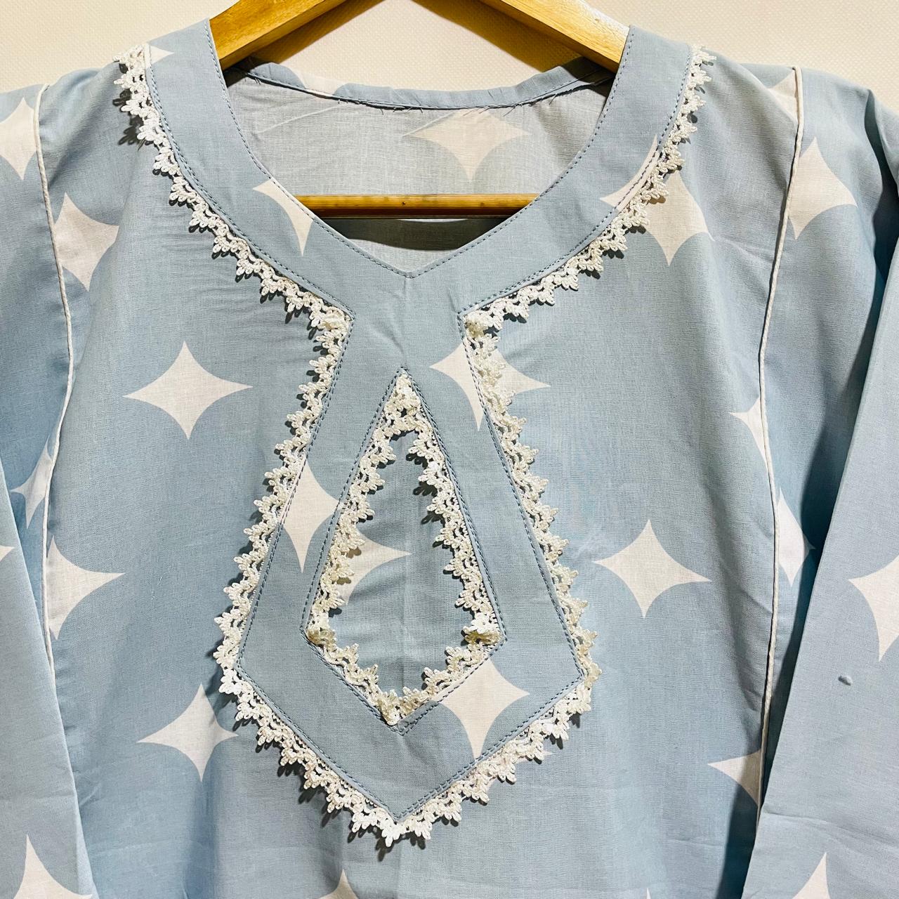 .2-piece printed co-ord set with lace up neckline.Soft,comfortable and fabric with a flattering fit.