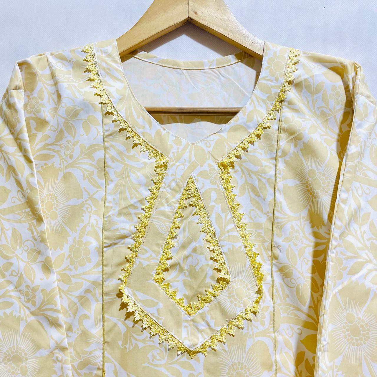 :2-piece printed co-ord set with beautifull laced design neckline. Soft, comfortable fabric with a flattering fit.